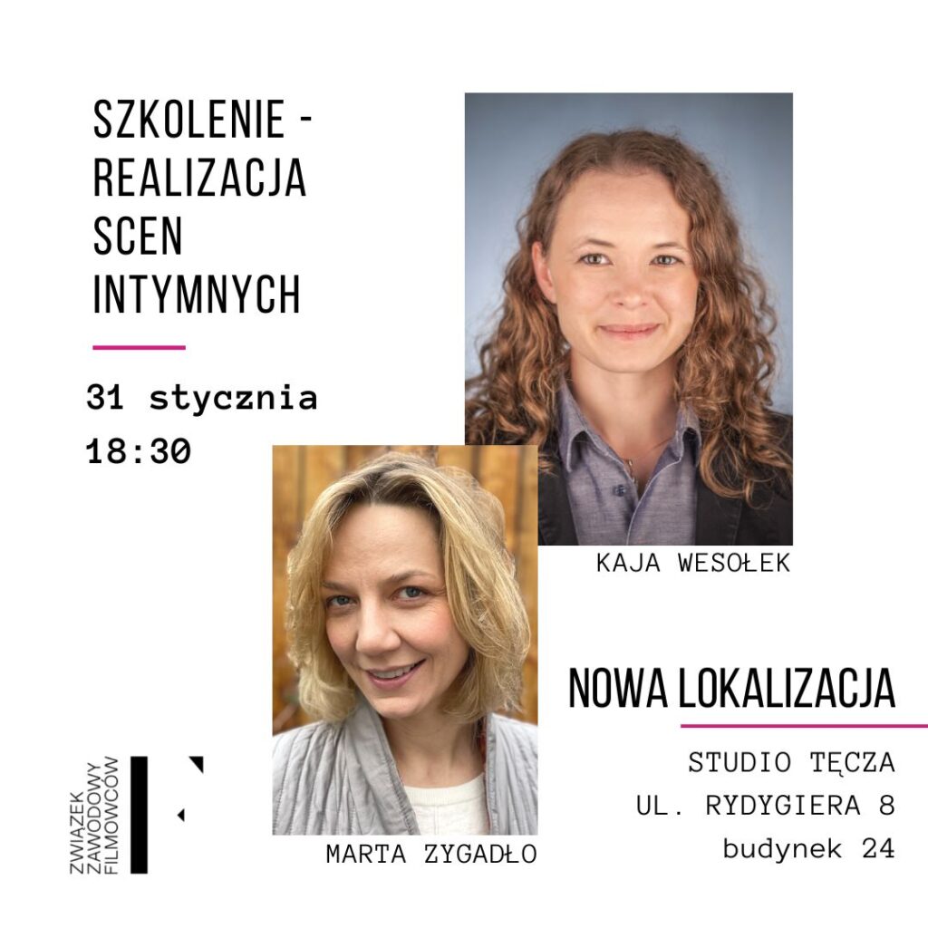 Zapraszamy Związkowców i Związkowczynie na nieodpłatne szkolenie z „Realizacji scen intymnych”, które odbędzie się w formule mieszanej: na żywo w STUDIO TĘCZA UL RYDYGIERA 8 BUD. 24 i online na platformie Zoom, 31 stycznia (wtorek) o godz. 18.30.